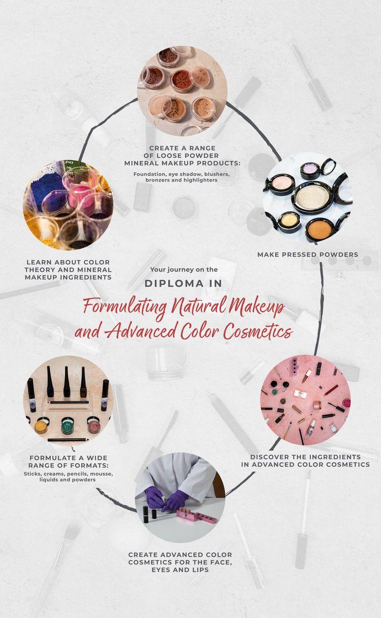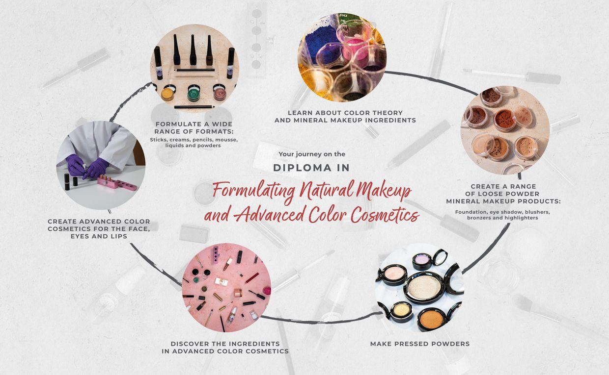 The Diploma in Formulating Natural Makeup and Advanced Color Cosmetics covers a wide range of product types, from simple straightforward formulations to complex ones. We suggest you follow the modules in the given order, so your knowledge and skills will progress gradually before advancing to more complex products.